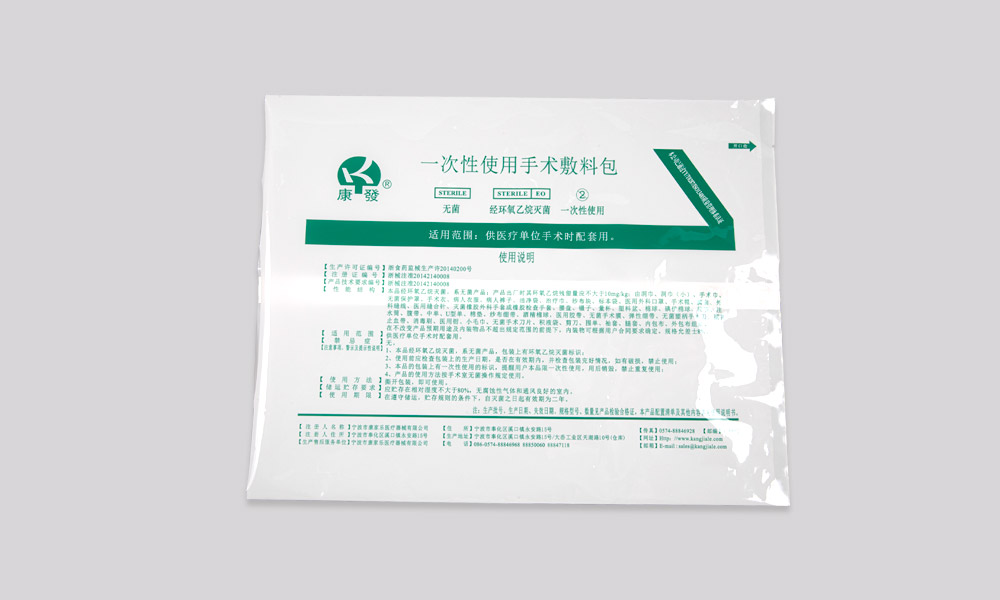 [性能結(jié)構(gòu)] 本品經(jīng)環(huán)氧乙烷滅菌,系無菌產(chǎn)品;產(chǎn)品出廠時其環(huán)氧乙烷殘留量應(yīng)不大于10mg/kg;由洞巾、洞巾(小)、手術(shù)巾、無菌保護(hù)罩、手術(shù)衣、病人衣服、病人褲子、潔凈袋、治療巾、紗布塊、標(biāo)本袋、醫(yī)用外科口罩、手術(shù)帽、腳套、外科縫線、醫(yī)用縫合針、滅菌橡膠外科手套或橡膠檢查手套、腰盤、鑷子、量杯、塑料盆、棉球、碘伏棉球、棉簽、注水筒、腹帶、中單、U型單、棉墊、紗布繃帶、酒精棉球、醫(yī)用膠帶、無菌手術(shù)膜、彈性繃帶、無菌塑柄手術(shù)刀、捆扎止血帶、消毒刷、醫(yī)用鉗、小毛巾、無菌手術(shù)刀片、積液袋、剪刀、圍單、袖套、腿套、內(nèi)包布、外包布組成。在不改變產(chǎn)品預(yù)期用途及內(nèi)裝物品不超出規(guī)定范圍的前提下,內(nèi)裝物可根據(jù)用戶合同要求確定。規(guī)格允差±8%。